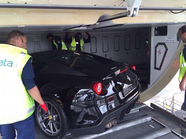 This special company did an optical check and documented the condition of this expensive car. The next step was the by hand roll into the airplane including the lashing and securing. On 06.09.2015 the car landed safety in Dubai.