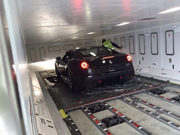 Der Ferrari wurde von einem Spezialteam optisch geprüft, dokumentiert und händisch an Bord geladen und gesichert und ist am Sonntag, den 06.09. sicher in Dubai gelandet.